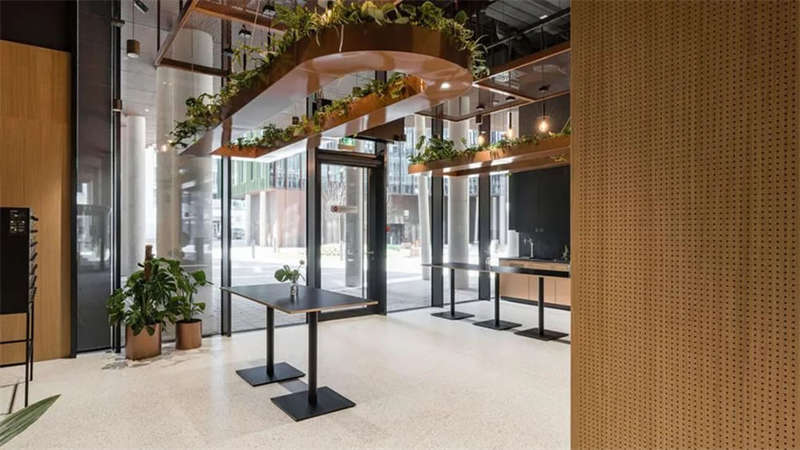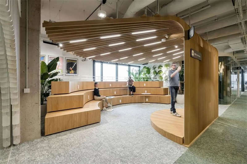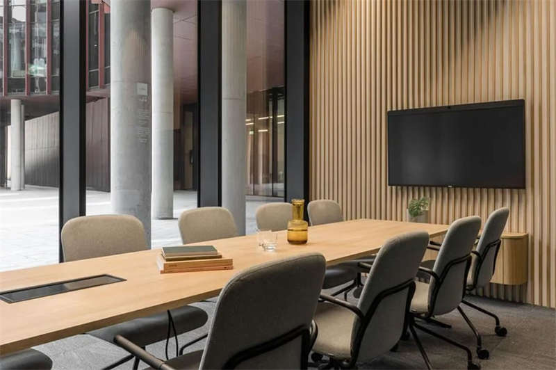 办公室选择了电动可调的升降办公桌,以满足员工个性化的需求。为了改善工作区域的声学效果,在工作站之间和灯具上安装了声学板,并采用了大量的织物窗帘,从而减少了办公室内的噪音和混响。此外,在会议室配置了顶尖的IT/AV系统,从而将办公室工作与远程工作紧密连接;安静的声学工作舱则配备了智能照明和高效通风系统。