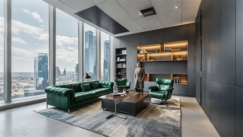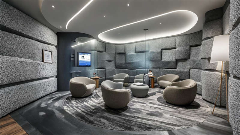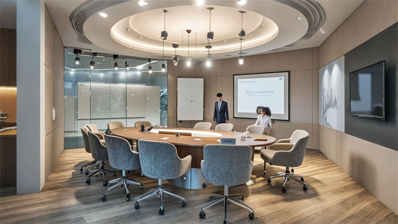 照明设计采用 3000K-4000K 色温分区控制,重点区域设置磁吸轨道灯满足展陈需求。声学处理方面,关键会议室采用双层中空玻璃与吸音毛毡墙面,确保 45 分贝以下静音标准。全案贯彻 LEED 认证标准,90% 建材达到环保回收要求,实现美学价值与实用功能的有机统一。
