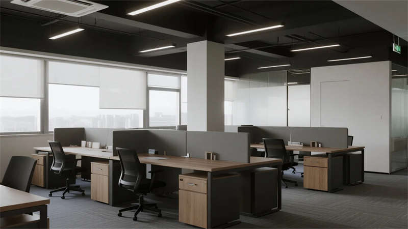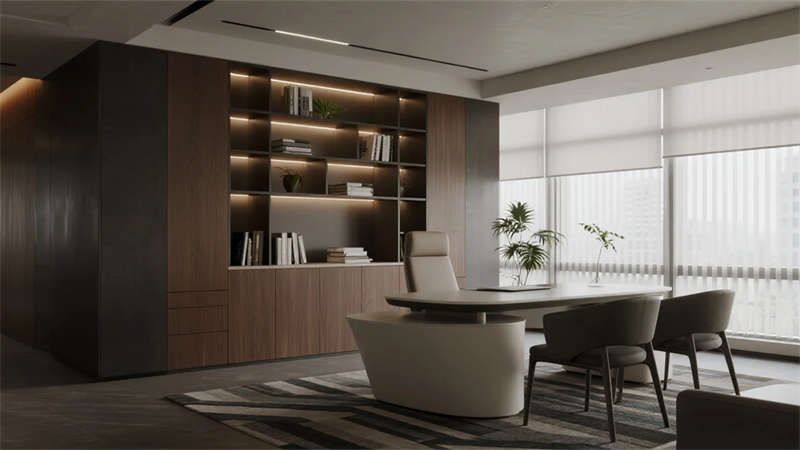 本案以现代简约美学重构办公生态,通过纯净的灰白基底与温润木色碰撞,打造兼具理性与人文的协作场域??占滢鹌备醋笆危韵咝怨庥拔镅裕捍庸岽┨旎ǖ那疤ǖ拼?,到悬浮会议室的透光玻璃盒体,光成为划分功能的隐形脉络。