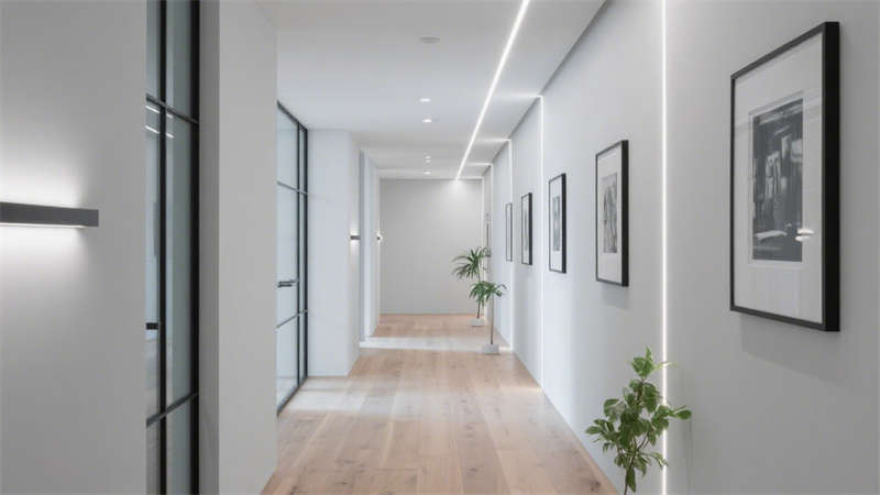 本设计延续现代极简主义风格,以高级灰与白色为基底,巧妙融入原木色元素,让整体空间既显简洁利落,又不失温润质感??占洳季肿⒅毓δ苄杂胧媸识鹊钠胶猓鹌痹幼笆?,用流畅的线条和通透的格局,营造出开阔明亮的办公氛围。?