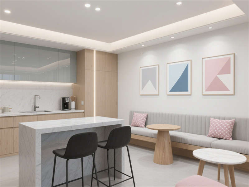 会议室聚焦会议需求,主视觉墙的色彩搭配缓解了会议的紧张感,智能会议屏与充足灯光满足高效沟通。休闲茶水区作为员工放松的“第三空间”,卡座设计节省空间,色彩搭配活跃却不杂乱,为员工提供舒适的休息环境。财务办公室侧重隐私与收纳,磨砂玻璃设计兼顾采光与遮挡,充足的收纳空间满足财务办公的特殊需求。储物间则以实用为主,分区明确,便利的灯光设计提升了使用便捷性,整体保持与其他区域一致的风格,让整个办公室成为一个协调统一的整体。