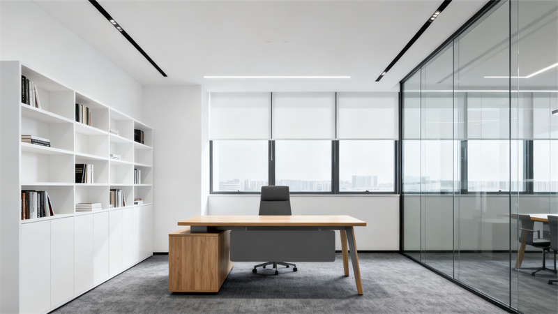本设计围绕现代简约风格展开,整体色调以中性色为基底,搭配低饱和度的辅助色彩,营造出沉稳且富有活力的办公氛围,与合肥这座城市兼具文化底蕴与现代气息的特质相契合。?