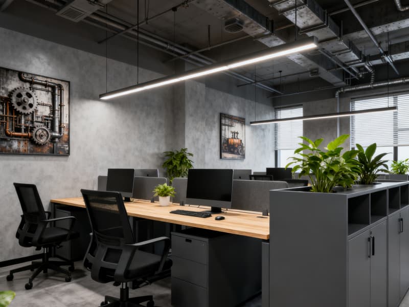 本设计聚焦6000平厂房的工业属性与实用需求,以现代工业风为核心,打造高效、规范且兼具人文关怀的生产办公空间。整体色调以深灰、浅灰、黑色为主,搭配局部橙色警示色与浅木色暖调,既契合工业空间的专业质感,又避免环境的冰冷与压抑。