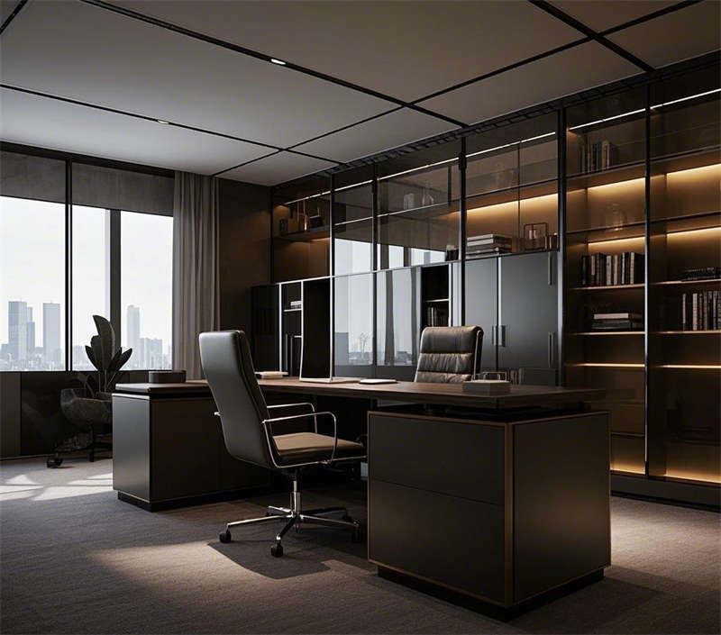 经理办公室和总裁办公室均以低调奢华为主,全景落地窗提供开阔视野,玻璃隔断与金属材质结合,现代艺术品装饰,彰显身份与品味。大会议室配备高端投影设备和环形灯具,玻璃墙面增强通透感;小会议室则采用圆形会议桌,紧凑而温馨,适合小型讨论。休息区设计舒适放松,沙发与吧台组合,绿植墙点缀,为员工提供轻松交流的空间。