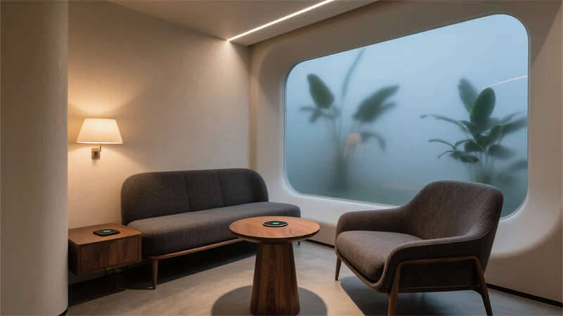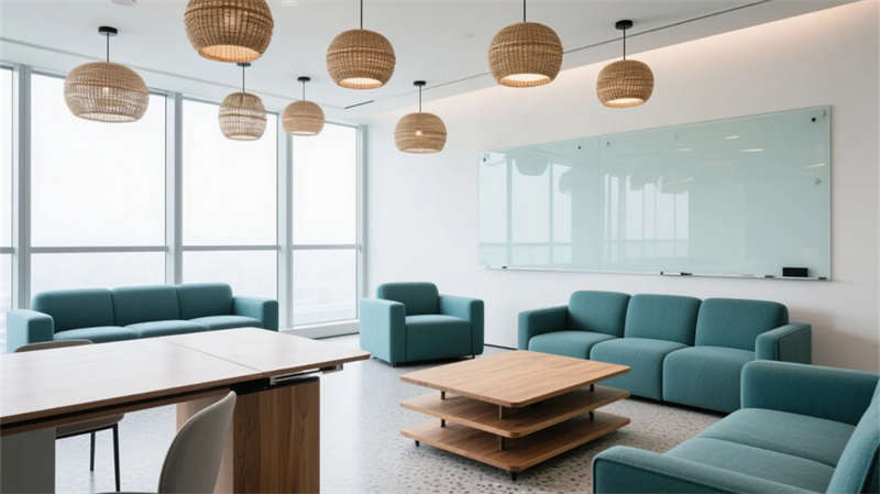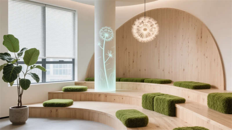 智能会议舱化身科技茧房,雾化玻璃平衡开放与隐私,触控桌面简化流程。贯穿始终的暖木、灰白与苔藓绿,在全景天光下沉淀出宁静能量。此处不仅是工作容器,更是蚌埠创新浪潮下,滋养灵感、尊重个体的未来生态聚落。