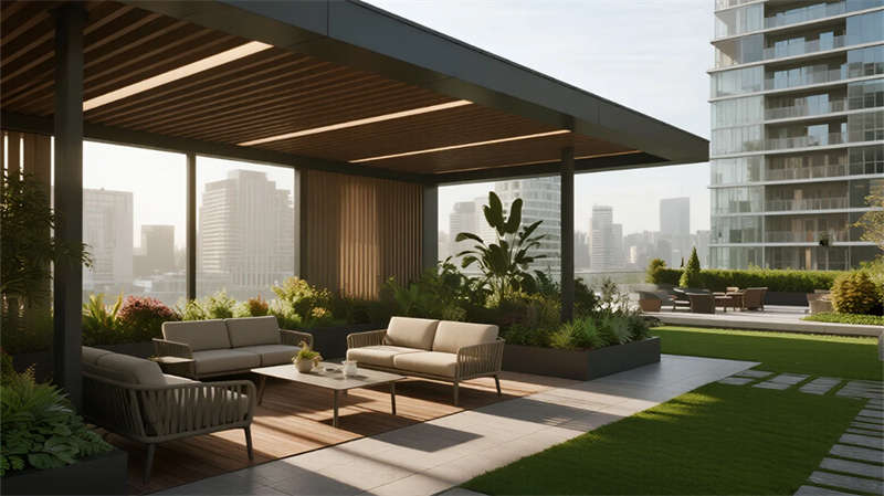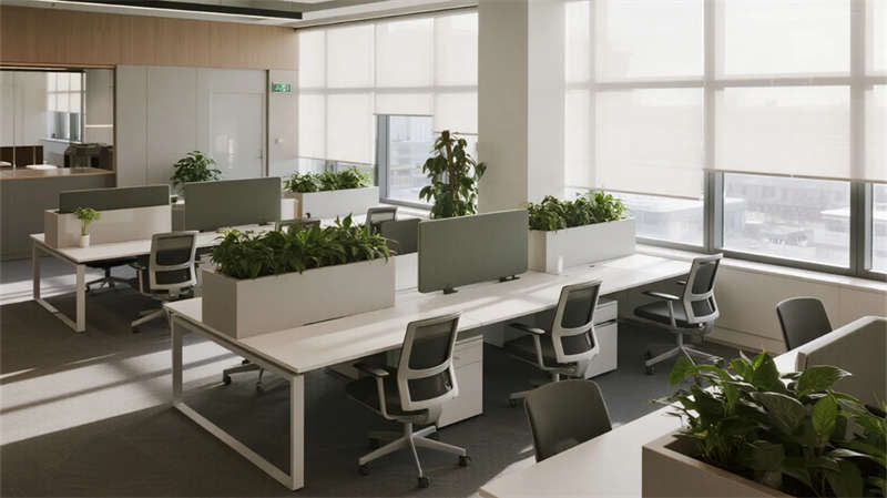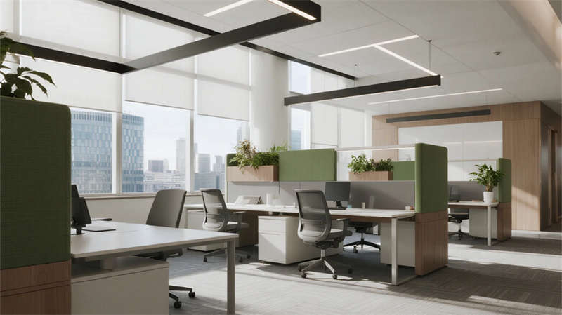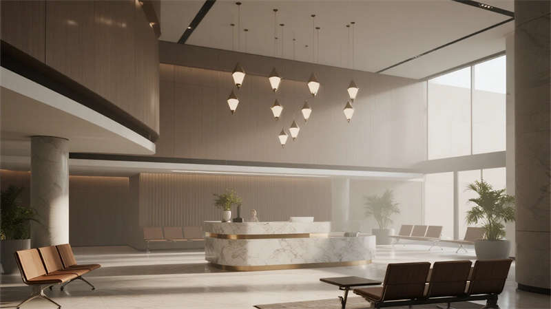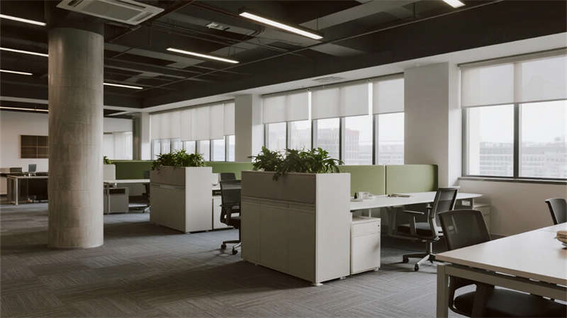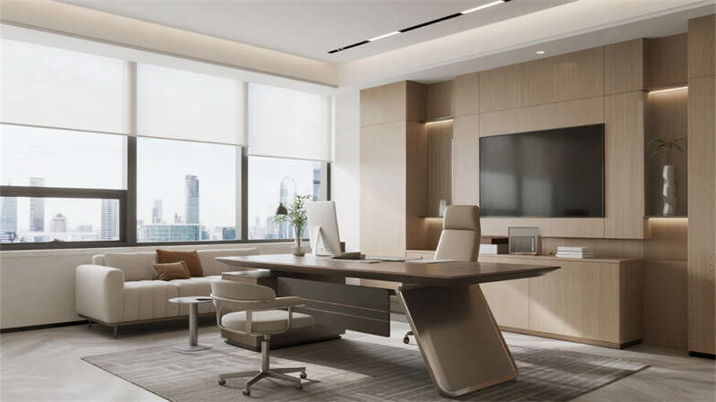 本设计以现代简约风格为核心,强调功能与美学的和谐统一,为办公环境注入灵动活力。整体空间采用浅色调基座,搭配玻璃幕墙和金属元素,营造通透轻盈的视觉体验。办公楼外观以几何线条勾勒城市天际线,大厅作为枢纽,以简约接待台和绿植迎接访客,传递专业与亲和力。电梯间延续宁静氛围,镜面设计拓展空间感??虐旃⒅匦鳎榛畈季执俳?,自然光透过落地窗洒满区域,绿植分隔既美观又环保。经理办公室和总裁办公室以私密性与开放性平衡,简约家具与城市景观结合,提升工作舒适度?;嵋槭夜δ苄郧浚A皆銮客ㄍ父?,便于创意碰撞。楼顶花园作为休憩绿洲,绿色屋顶与简约座椅提供放松空间,呼应环保理念。设计融入蚌埠地域特色,汲取城市活力与自然元素,打造高效、舒适且可持续的办公环境,体现现代工作方式的优雅蜕变。