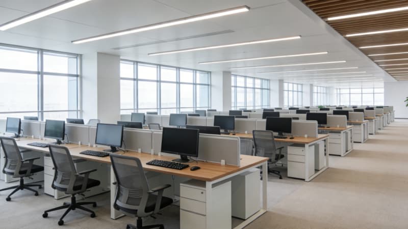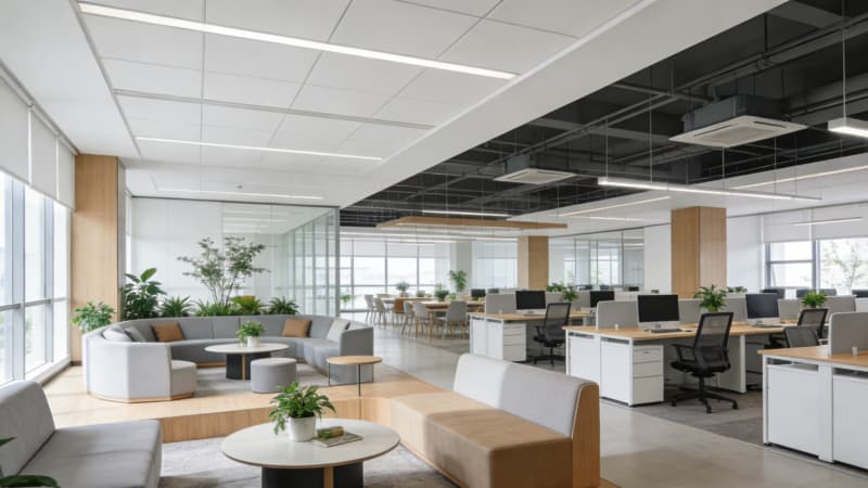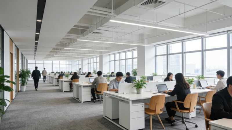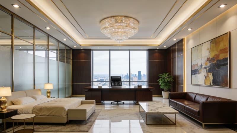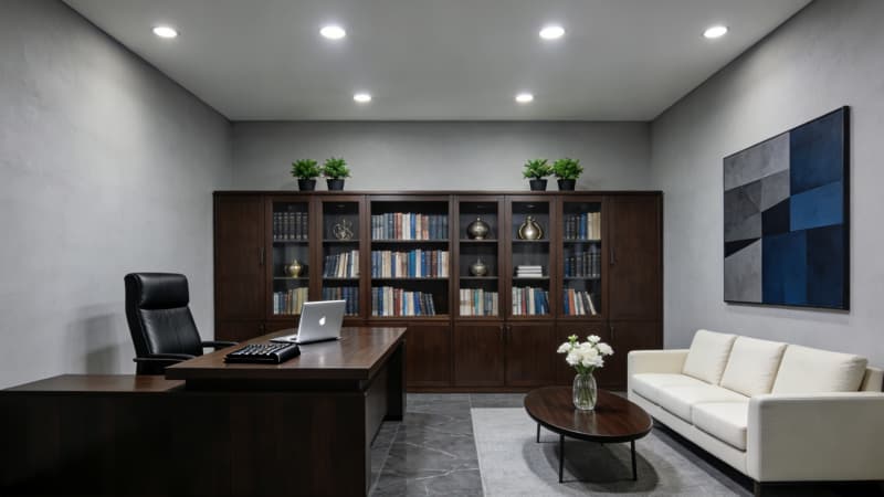 本案为蚌埠本土企业量身打造3000㎡全景式办公室,以“地域文脉+现代办公”为核心,将蚌埠淮河文化的温婉底蕴与当代极简美学相融。大楼外观采用玻璃幕墙搭配浅灰金属线条,简约大气中透着企业实力;前台以温润石材与局部蚌壳纹理装饰,暗藏地域符号??攀桨旃婊?个功能分区,兼顾协作与私密,通透采光搭配灵活工位,适配多元办公需求。经理办公室以沉稳色系为主,嵌入定制收纳系统,平衡高效办公与舒适体验;总裁办公室则融入轻奢元素,独立茶歇区与全景落地窗结合,彰显格局。会议室配备智能会议系统,灵活切换研讨、汇报等模式。整体设计既满足3000㎡空间的功能分区合理性,又以细节传递蚌埠地域特质,为企业打造兼具实用性与品牌调性的办公主场。