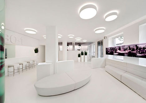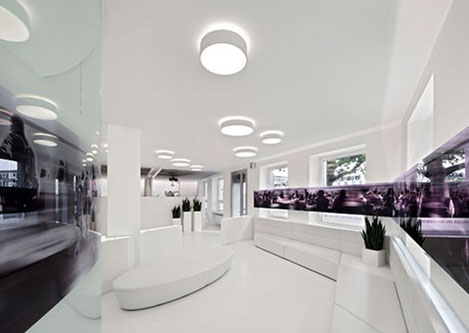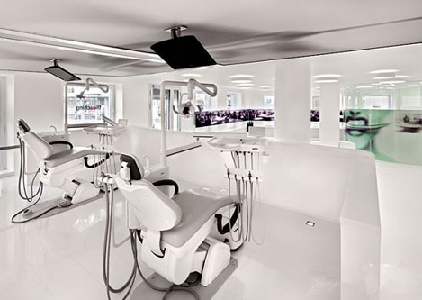 设计理念:牙科诊所最终还是归属医院范畴,给病人治病的。只是牙科诊所可以在装修上比医院有更多的想法和创意的设计元素在里面。白色的地砖灰色的座椅使空间设计更严谨,传递出一种信任感并营造出临床氛围。
