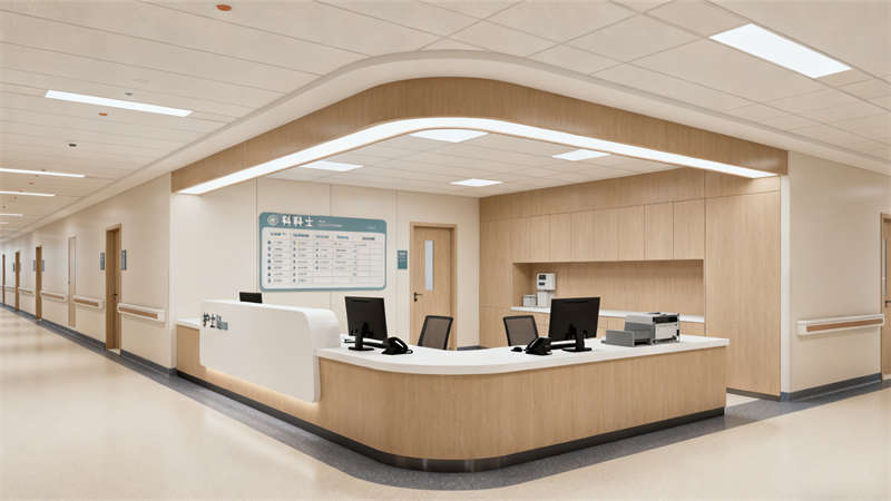 病房装修以舒适、温馨为重点,色彩选择温和雅致,搭配简洁的家具,营造出类似家庭的氛围,帮助患者放松心情,更好地恢复健康。走廊装修注重采光与通行安全,墙面设计简洁大方,避免复杂装饰带来的压抑感?;な空咀靶藜婀斯δ苄杂朊拦坌裕侠砩柚霉ぷ髑?,方便医护人员与患者及家属沟通。?