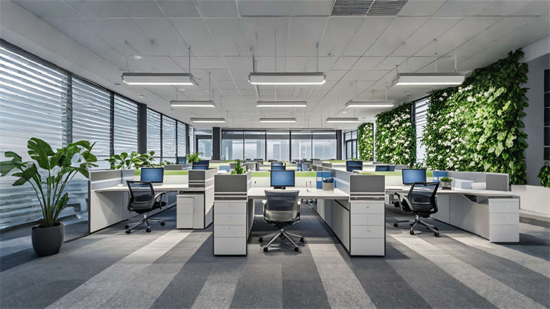 本 7000㎡办公楼设计采用 ' 高效生态办公 ' 理念,整体以银灰、原木、企业蓝为主色调。前厅通过 6 米挑高空间与动态光影塑造企业形象,开放式办公区采用模数化设计实现灵活重组。智能控制系统覆盖 85% 区域,会议空间配备物联网设备实现远程协作。生态设计方面,室内外绿化率达 30%,采用 Low-E 玻璃幕墙节约能耗。动线规划上,通过核心筒辐射式布局,实现各部门 5 分钟可达。软装选用 A 级防火材料,家具符合人体工学标准,照明系统达到 EN12464-1 标准。特别在声学处理上,关键区域 STC 评级达 50 以上,打造舒适办公环境。
