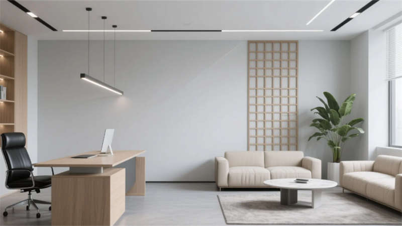 本办公楼设计以“简约、高效、自然”为核心理念,采用浅灰、白色与木色为主色调,搭配哑光金属与线性灯光,构建出兼具专业度与人文关怀的现代化办公环境。