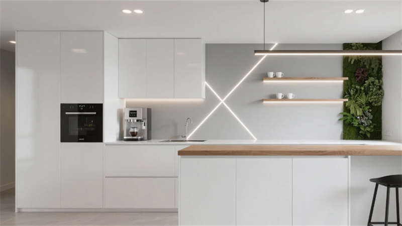 高管办公空间彰显差异化设计:经理办公室以木格栅墙面与模块沙发营造亲和力,总裁办公室则通过深胡桃木隐形门、弧形沙发与城市景观落地窗凸显沉稳气度。多功能厅采用可伸缩隔断与嵌入式LED屏,适应培训、会议等多场景需求;茶水间以中岛吧台与几何层板打造轻松社交空间,筒灯聚焦的绿植墙增添生机。