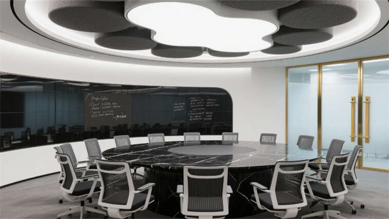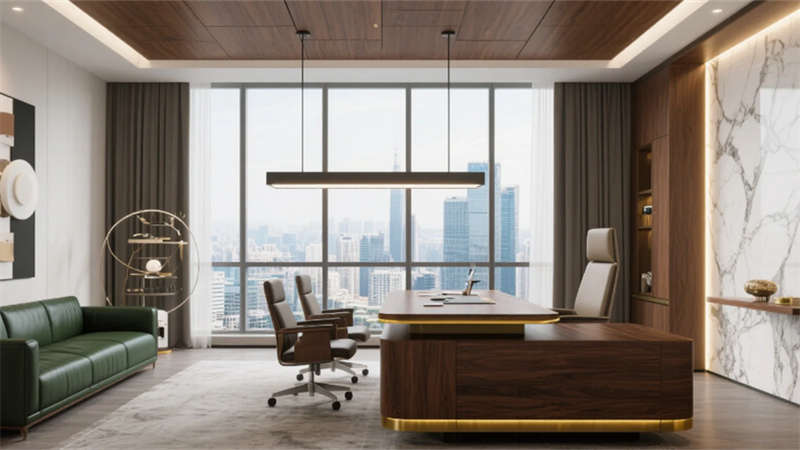 私密空间演绎克制的精致:经理办公室玻璃隔断内,胡桃木书桌与毛毡吸音墙平衡理性与温度;总裁套间则以大理石暗光墙面对话城市天际线,黄铜细节点亮低调的尊崇?;嵋槭液谑ぷ烙氪盼A樾疵媾鲎擦楦校残菹⑶胀粱ㄅ栌腴祥倘淼?,在混凝土中岛上生长出松弛的烟火气。