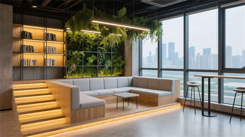 健康关怀融入细节:减压舱提供冥想庇护,屋顶花园集都市农耕与星空社交于一体。实验室的磁吸墙面与重组工作台,呼应着科创企业的迭代基因。整体设计通过原生材料与科技元素的碰撞,在工业质感中生长出自然生命力,重新定义合肥现代办公的可持续范式。