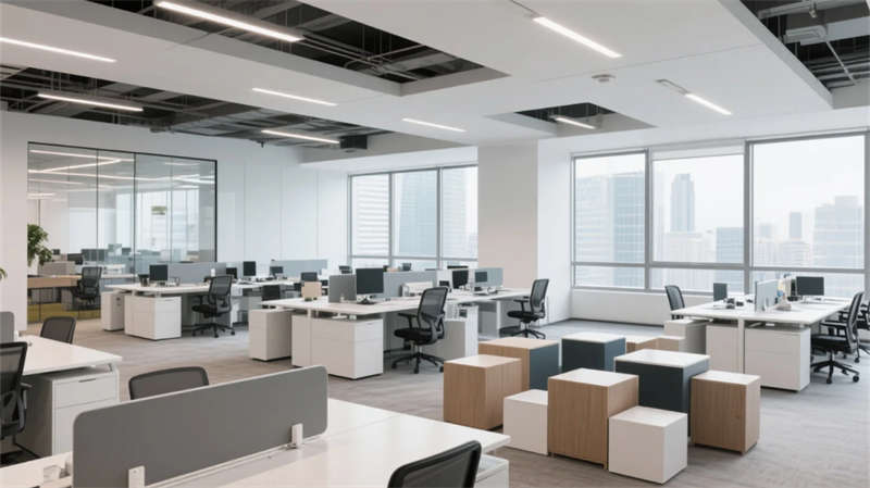 这座办公楼以现代简约风格为核心,将自然元素与科技感巧妙融合,打造出高效灵活的工作环境。设计强调人性化关怀,每个功能区都通过简洁线条和中性色调实现视觉统一,例如大堂的开放通透与休息区的温馨社交相呼应,营造出舒适而专业的氛围。绿植的点缀和充足采光贯穿始终,不仅提升了空间活力,还促进员工福祉??攀桨旃С中鞔葱拢喙δ芴牧榛畈季质视Χ嘌枨?,体现了设计的可持续理念。在合肥这座充满活力的城市中,项目成为办公新典范,通过简约美学与功能性平衡,为城市注入优雅与效率,引领现代工作方式的变革。整个空间注重细节与流畅过渡,让日常办公化为愉悦体验。
