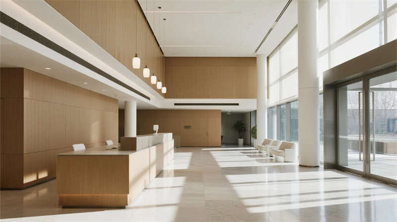 本办公楼设计以现代简约美学为基调,营造出宁静而高效的商务环境。建筑外观采用纯净的玻璃幕墙与利落线条,在光影交错中呈现轻盈通透的视觉体验;步入大厅,浅色石材与温润木质元素相融,挑高空间与落地窗引入丰沛自然光,传递开放包容的氛围。内部功能区布局注重人性化:开放式办公区以灵活隔断促进协作,绿植点缀为空间注入生机;简约会议室配备智能设施,满足高效沟通需求。员工休憩区与楼顶花园成为亮点——前者以暖色调家具打造社交角落,后者则用木质平台、绿篱与城市天际线共构都市绿洲,让工作者在忙碌之余俯瞰风景、释放压力。电梯厅与卫浴空间延续统一设计语言,细节处体现精致工艺。整体设计将自然、光感与简约哲学交织,创造一处兼具理性效率与人文温度的办公场所。