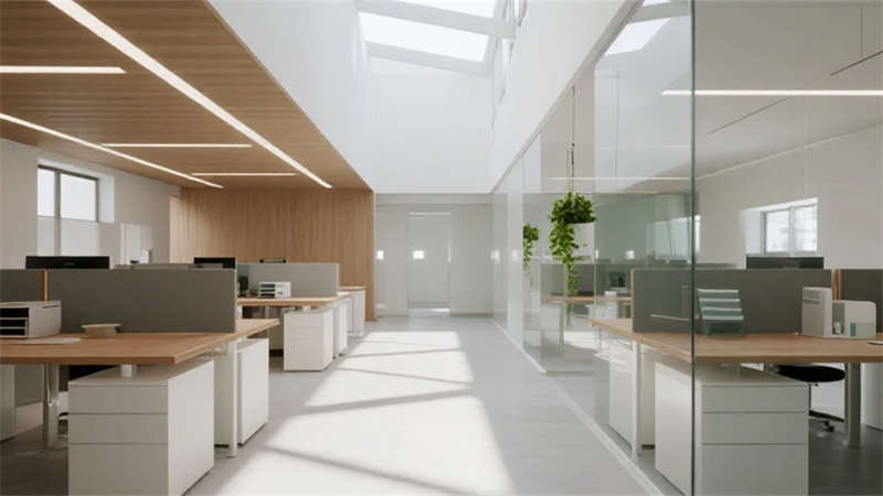 内部空间聚焦人性化体验:开放式办公区借由落地窗引入充沛自然光,搭配原木元素软化工作氛围;会议室以通透玻璃隔断实现灵活协作;休闲咖啡区则通过暖调灯光与弧形家具构建松弛社交场景。屋顶花园将城市景观转化为员工休憩灵感源,模糊室内外界限。