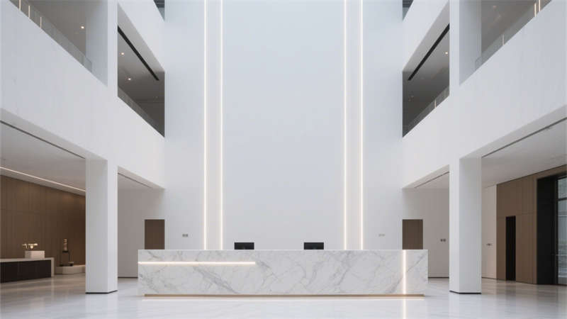 本设计延续此前办公楼建筑的现代主义基调,让室内空间与外立面设计语言形成呼应,营造连贯且富有质感的整体氛围??占洳季忠?“通透流畅” 为核心,摒弃冗余装饰,用简洁线条勾勒区域边界,既保证各功能区的独立性,又避免视觉上的割裂感。