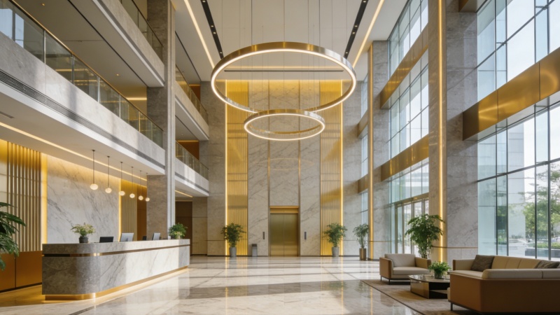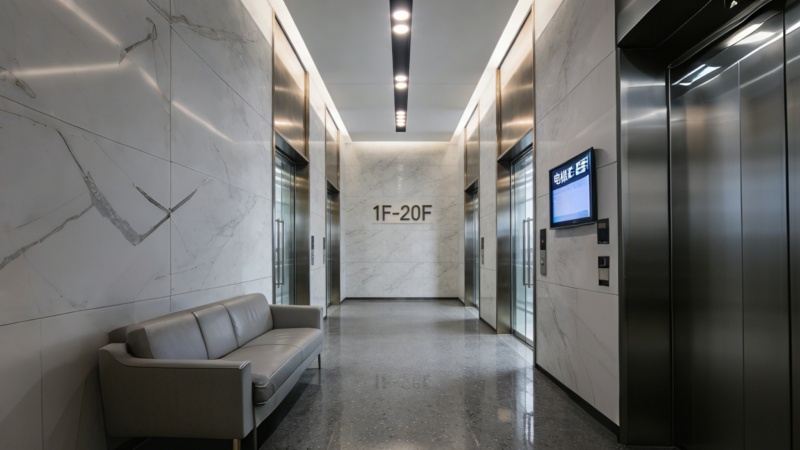 现代办公楼电梯厅效果图,简约商务风设计展示