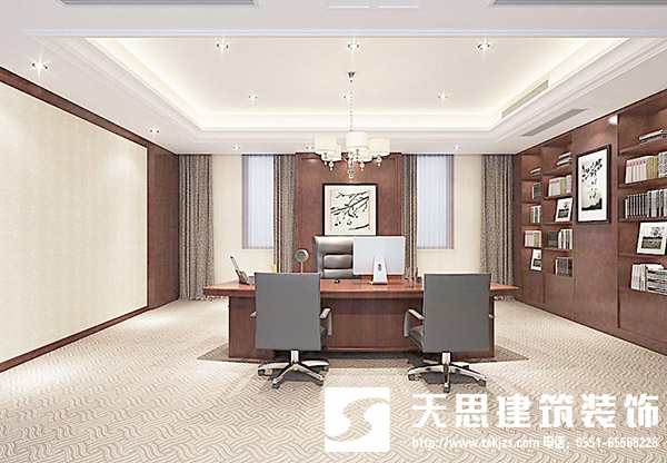 办公室一定要明亮,宽敞,过于狭小的空间环境不利于思考,还会很压抑,总经理办公室位于公司的后方,那样比较好把握员工的动向,员工也是比较爱岗敬业。总经理办公室设计的时候不宜开过多的门,门的朝向也很重要,最好开在坐位的左前方。总经理办公室设计布局一定要合理,那样才会更有效率的工作,要提供绝对的安静,封闭的环境,以免受到打扰。