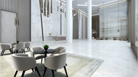初看远光软件的大前厅,便给人一种明亮而大方的大企业形象,这也是由于四周大理石的光滑材质以及吊顶藏光的相互映衬形成的空间感受。以乳白色的圆柱搭配较高的吊顶,营造一种恢弘的风格,在前厅设计中是相对适用的。