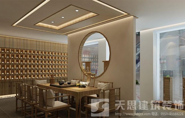 茶艺馆的材质可以考虑那些有灵性却也最为普通的自然材质,例如玻璃、青砖、混凝土等,追求其表面的质感和肌理变化。