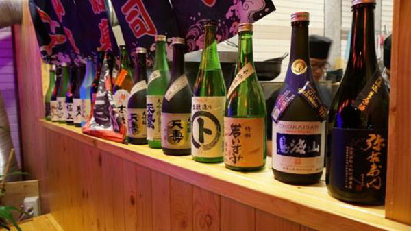 很多日本的酒瓶都是1.8L的,集中统一摆在店里,很有气势感。