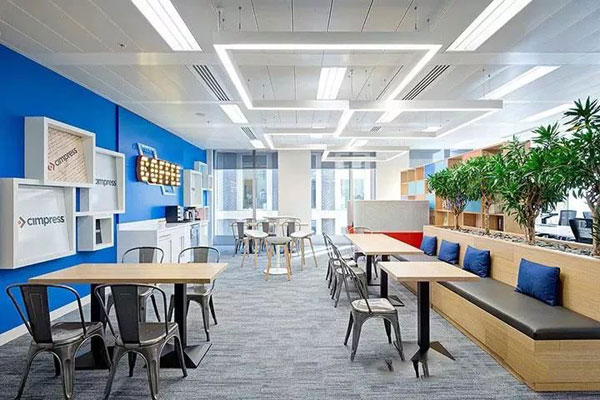 电子商务的快速崛起给传统印刷行业带来强大的冲击力。想要在这个行业站稳脚除了品牌宣传以为,办公室装修也是很重要的一部分,良好的办公环境不仅能给客户增加信任感,也可以为招揽更多人才奠定基础。本案例主导了室内的色彩规划与图形创意。大面积炫目的蓝色不仅强化了品牌认知,还带来强烈的视觉冲击。休闲协作区配以轻浅的木饰面和充满活力的绿植,打造惬意舒适的空间氛围。