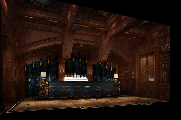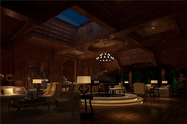 休闲区的酒室则效仿欧式经典酒窖的样式,皮质沙发、半露天顶和大吊灯,在悠扬的钢琴声中享受酒精的熏陶。