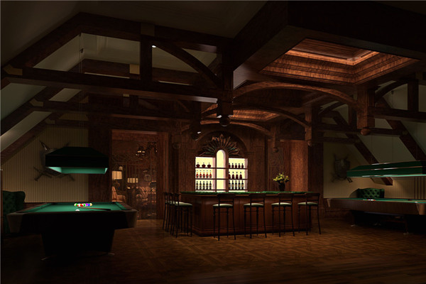 娱乐区则设计成台球室和音乐吧,前者是古典庄重的木式结构,后者是雍容华贵的玻璃结构,一动一静,分外鲜明。