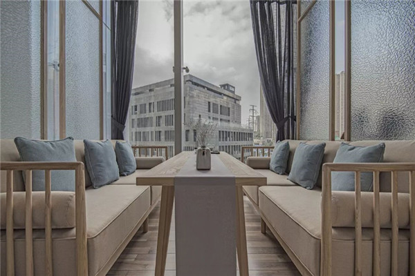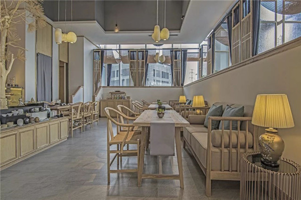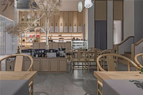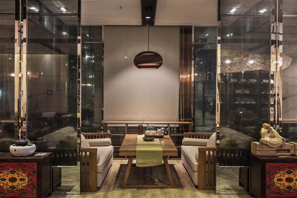 茶艺馆的材质在茶艺馆的设计中,最常用的是那些有着灵性的、最为普通的自然材质,例如玻璃、涂料、青砖、石灰等,追求其表面的质感和肌理变化。