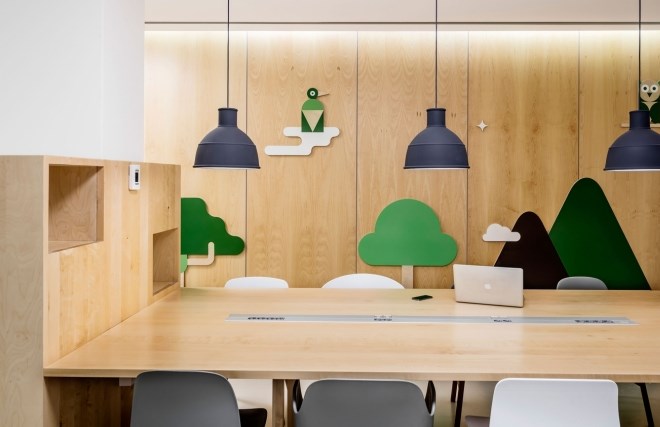 卡通样式的装修格调,根据所在区域的不同功能而被设计的风格各异,但却具有同样的目的,那就是营造出一种通透的感觉,这种在各个区域之间自由流动的感觉,肯定会给那些稚嫩的小脸庞带来一些快乐。