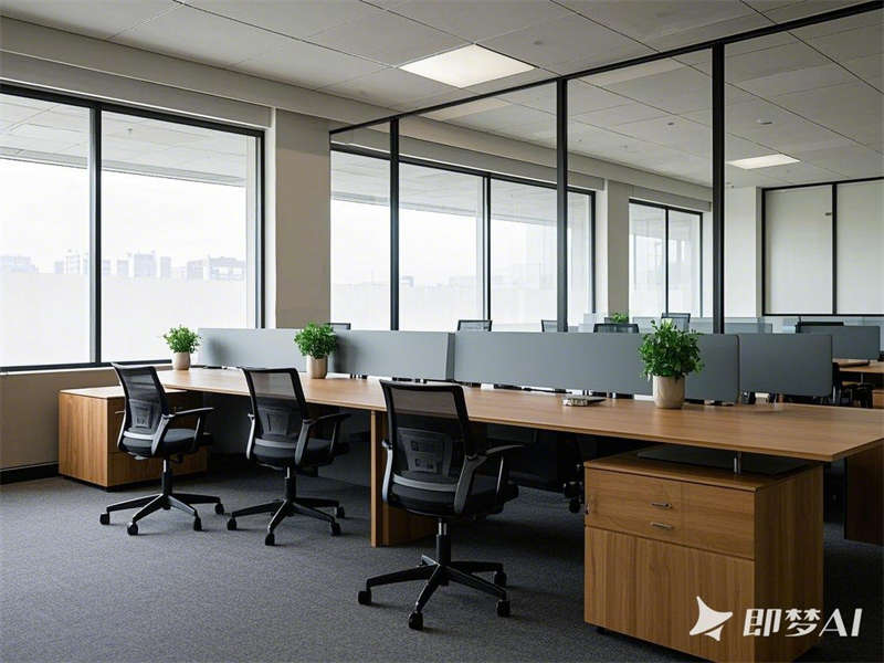 设计风格上, 以简约现代为主,摒弃繁杂的装饰,运用简洁的线条和低饱和度的色彩,营造出沉稳大气的商务氛围。同时,巧妙运用玻璃隔断、绿植墙等元素,增加空间通透感和层次感,打造舒适自然的办公环境。