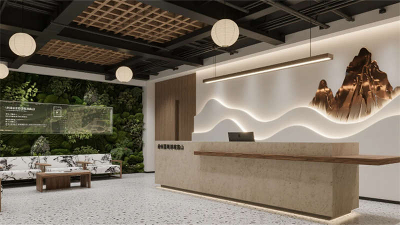 生态理念贯穿细节:从苔藓地景的健康站到悬垂绿植的茶水间,自然元素成为空间“肺叶”。文化廊道蚀刻的琅琊山铜板与发光青石小径,行走间完成在地文化沉浸。