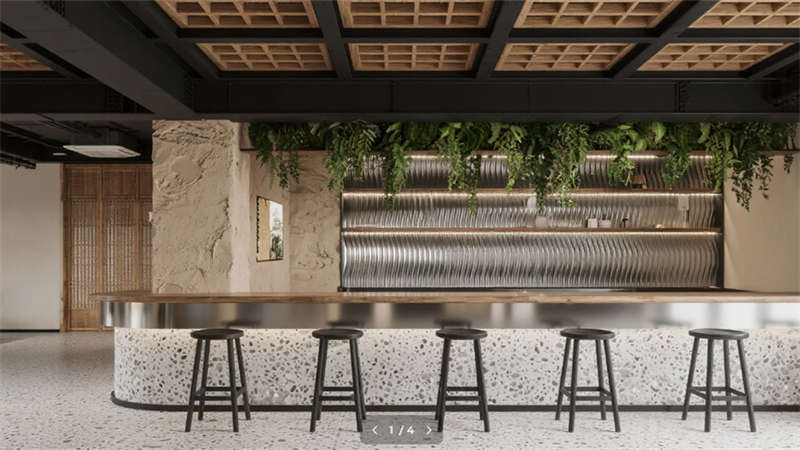 新中式工业风骨架支撑起诗意场景,智能光疗系统与磁吸供电科技隐于无形。云会议舱的烟雨江南数字画卷,与夯土吧台的粗粝质感形成时空回响。这里不仅是效率容器,更是滋养人文精神的山川微缩剧场,在机械理性中重建天人合一的当代范本。