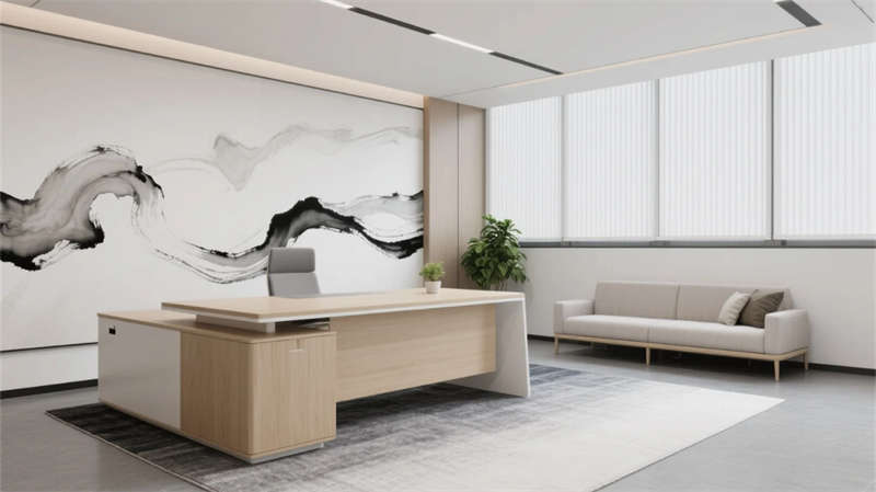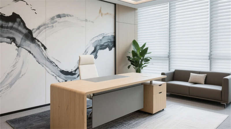 独立专注舱的磨砂玻璃材质兼顾隐私与通透,与休闲咖啡角的墨绿瓷砖碰撞出活力节点。管理层办公室的水墨背景墙呼应皖东人文气质,而顶层露台将城市景观转化为休憩灵感源。设计摒弃冗余装饰,用绿植贯穿空间,在理性框架中注入自然呼吸感,诠释滁州商务生态的前瞻视野——工作不仅是效率的达成,更是人与空间、环境的诗意共生。