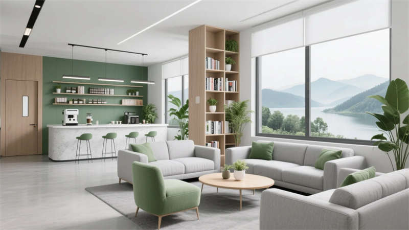 这座办公室设计以滁州为灵感,融合自然与创新元素,打造出和谐高效的工作环境。整体采用现代简约风格,线条流畅而开放,中性色调搭配木质细节,营造出清爽视觉统一感。设计中强调生态连接:绿植贯穿各功能区,如休息区的山水窗景和协作区的绿植墙,呼应滁州的自然环境,提升员工舒适度与归属感。核心亮点在于灵活空间规划——模块化家具和可移动隔断支持快速重组,适应不同工作模式,从专注区到协作区,无缝切换个人与团队需求。茶水间和休息区融入社交元素,鼓励非正式交流,而经理办公室的私密会谈区则平衡了效率与人文关怀。照明设计巧妙利用自然光与LED结合,减少能耗,同时绿植点缀净化空气,体现可持续理念。最终,空间不仅提升生产力,更成为滁州城市活力的缩影,彰显现代办公的进化方向。