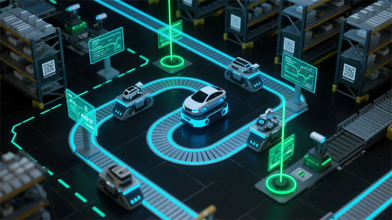 全场景贯穿透明化UI界面与发光网格线,既突显工业级严谨,又以动态数据流强化科技感知,为汽车制造赋予高效、低碳、安全的未来基因。