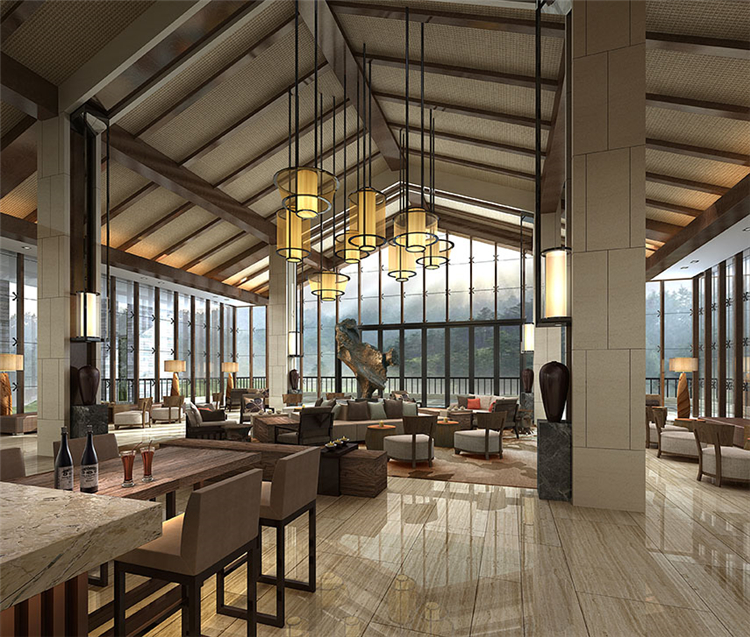 3、在酒店设计中尊重自然,爱护自然,自然的景观以最大视角展现在室内,自然的元素,以艺术与提炼的方式巧妙借用到室内,因为自然是最美的,也是最重要的!