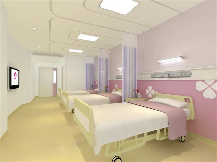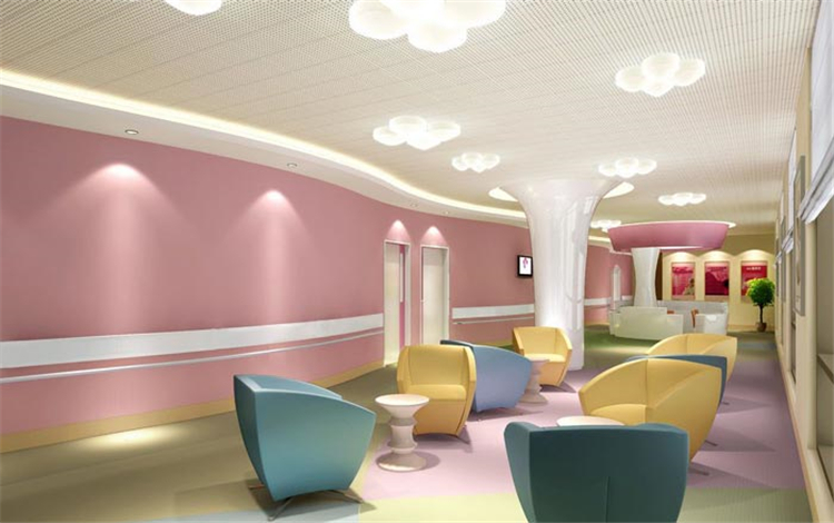设计理念: 妇女儿童医院装修设计之初,设计师就不断吸收建筑设计中“母亲怀抱小孩”的理念。在经过和业主之间的交流,深入了解医院的院系文化、历史背景、管理理念和价值观取向,结合妇女儿童这两种特定人群进行设计思考。医院以产科、妇科、儿科为主要服务对像,设有女性温馨门诊,妇科腔镜中心、儿童“卡通”门诊。病区设有中高档床位90张,拥有VIP尊贵病房,设计师为了让病房家庭化,对病房进行了重点设计,定位于温馨的病房。在病房区域的大厅,设计师引入了自然的光照、加入了休闲的风格,定位于阳光休闲大厅。音乐候诊咖啡吧,全方位满足客患个性化需求,营造生态化、人文化就医环境。