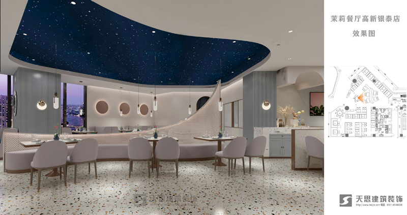 在餐饮空间设计中,照明是营造就餐心理环境的关键,无论是什么性质,什么风格的餐饮空间,都有自己的主题。从换位思考的角度出发,在就餐时,自身所在的环境、灯光颜色等都是影响因素。灯光照明起着引导和配合主题的作用,以烘托出良好的就餐环境氛围,从而映射和改变就餐者的就餐心理环境。