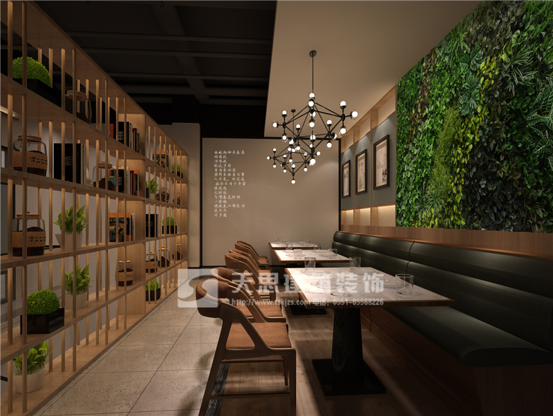 花草盆景设计师装饰在空间的每一个角落,目的就是希望让自然气息充满在整个空间之中,整个空间不仅有人文情怀,同时也有自然情怀。在这里就餐是一种享受,优美的室内环境让客户对此流连忘返,美味的菜肴+优美的就餐环境,正是餐厅的竞争优势所在。