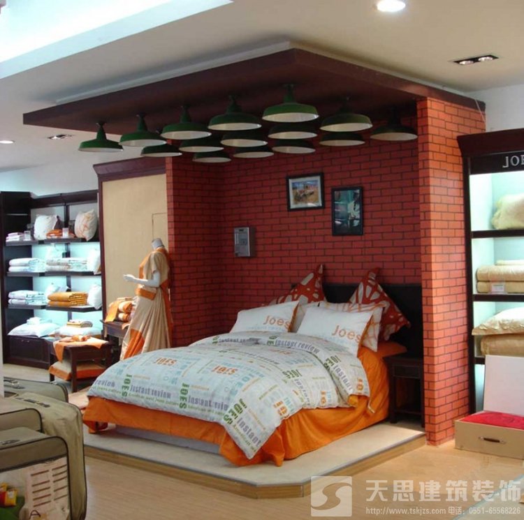 家纺店装修通过对多种装饰素材的精心运用不仅能使店铺室内设计的风格鲜明,店面的特色突出,而且还能对店内商品起很好的烘托作用。现在的家纺店装修应该要选择简欧带点现代的风格,这样比较能过吸引顾客。室内设计应设计的温馨,大气 ,浪漫,这样才会有很大的客户量。