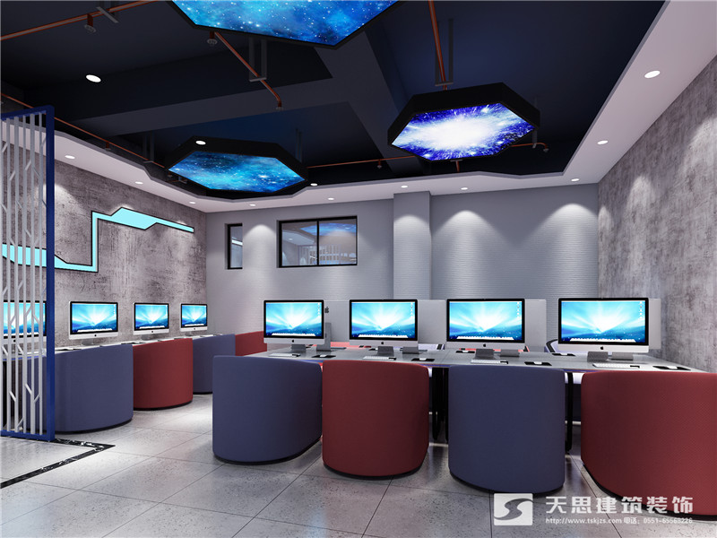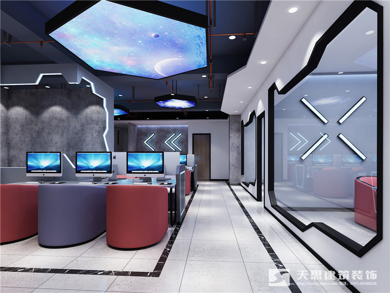 根据业主的要求,网咖设计的整体颜色以浅色为主,中间穿插对比强烈的撞色系来展现效果。