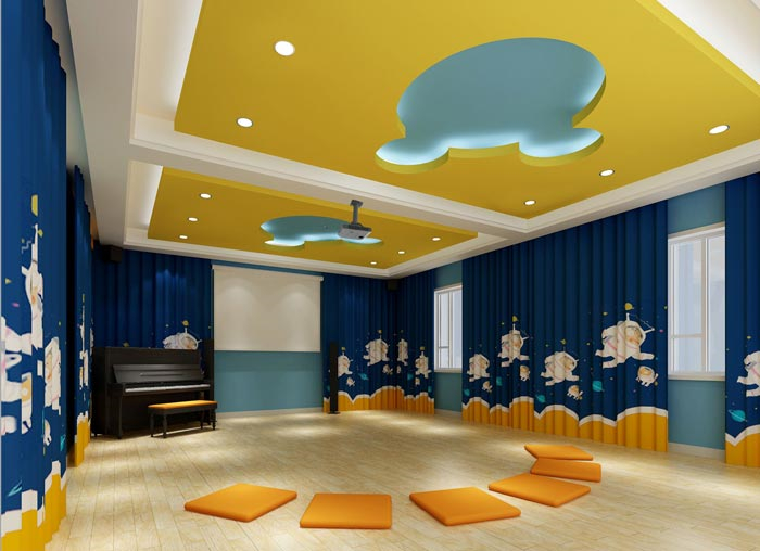 音乐教室的设计:对于每一个人来说,音乐都是美好的,对于孩子来说更是如此,当老师弹起钢琴的时候,孩子们在后面翩翩起舞,无疑可以激发孩子们对于音乐的兴趣,这里的一切都志在激发孩子的兴趣,然后在兴趣的指引下,达到教学的目的。
