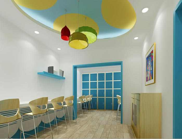 休息区域的设计:此处不仅可供教师休息,同时也可供孩子们在这里玩耍、娱乐,设计师的目的就是想让大家在这里可以感受到阳光的温暖,在此处阳光渗透到每一处空间,设计师希望阳光、自然可以扫清教师心中的烦躁,同时也给孩子更多的温暖。