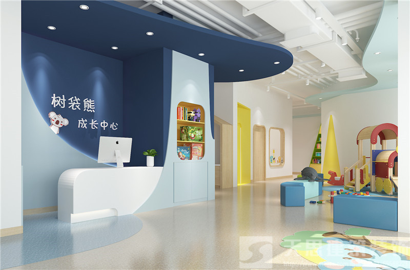 如果早教亲子教室空间较小,可以使用冷调的颜色能使房间显得更大,但也会过于生冷,故可以使用“烘烤”色调,使用饱和度低的暖色调。绿色象征着生命,在装修时可以配上一些花草树木等自然元素,让孩子能更好的亲近自然,感受自然。而蓝色象征着纯洁,采用大海、天空的主题,可以让孩子的视野更加宽阔,通过海洋、天空来营造一种轻松舒适的感觉,这种色彩下能更好的激发孩子的活跃思维。