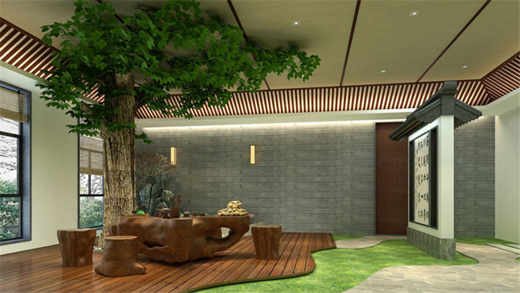 书法教育培训机构庭院设计:菩提本无树,明镜亦非台,本来无一物,何处惹尘埃,四局偈语表现的即是书法也是道理,表示书法的博大精深。