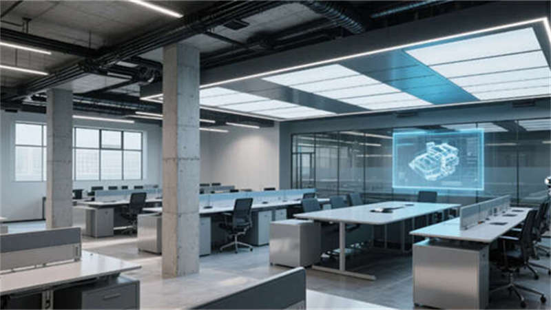 设计深度融合功能与美学:配电房铜排走线展现工业秩序美,设备维护区AR检修投影墙提升运维效率,全厂采用磁性管线槽盖系统实现“隐形工程”。5000平空间以金属灰为主调,局部注入企业蓝与安全橙,在冷峻工业风中赋予人文温度,为合肥高端制造产业升级提供标杆范本。