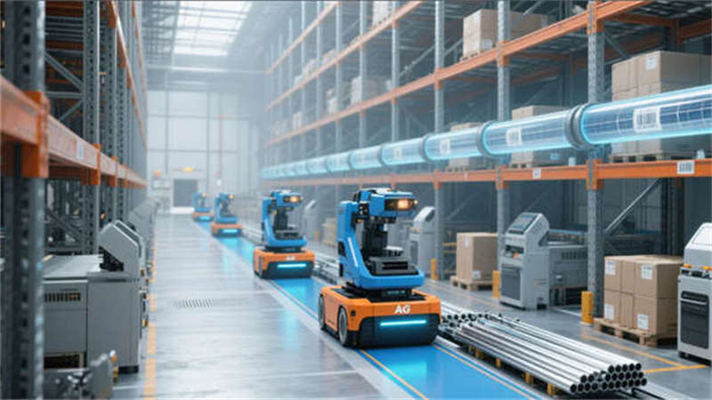 质检实验室以白色洁净空间为主轴,三坐标测量机与光谱分析仪配备环形补光系统,数据看板实时投射SPC管控图表,凸显精密制造的严谨性。仓储区通过12米高智能立库与AGV物流机器人联动,橙色激光导航带与电子标签系统实现“黑灯仓储”效能。